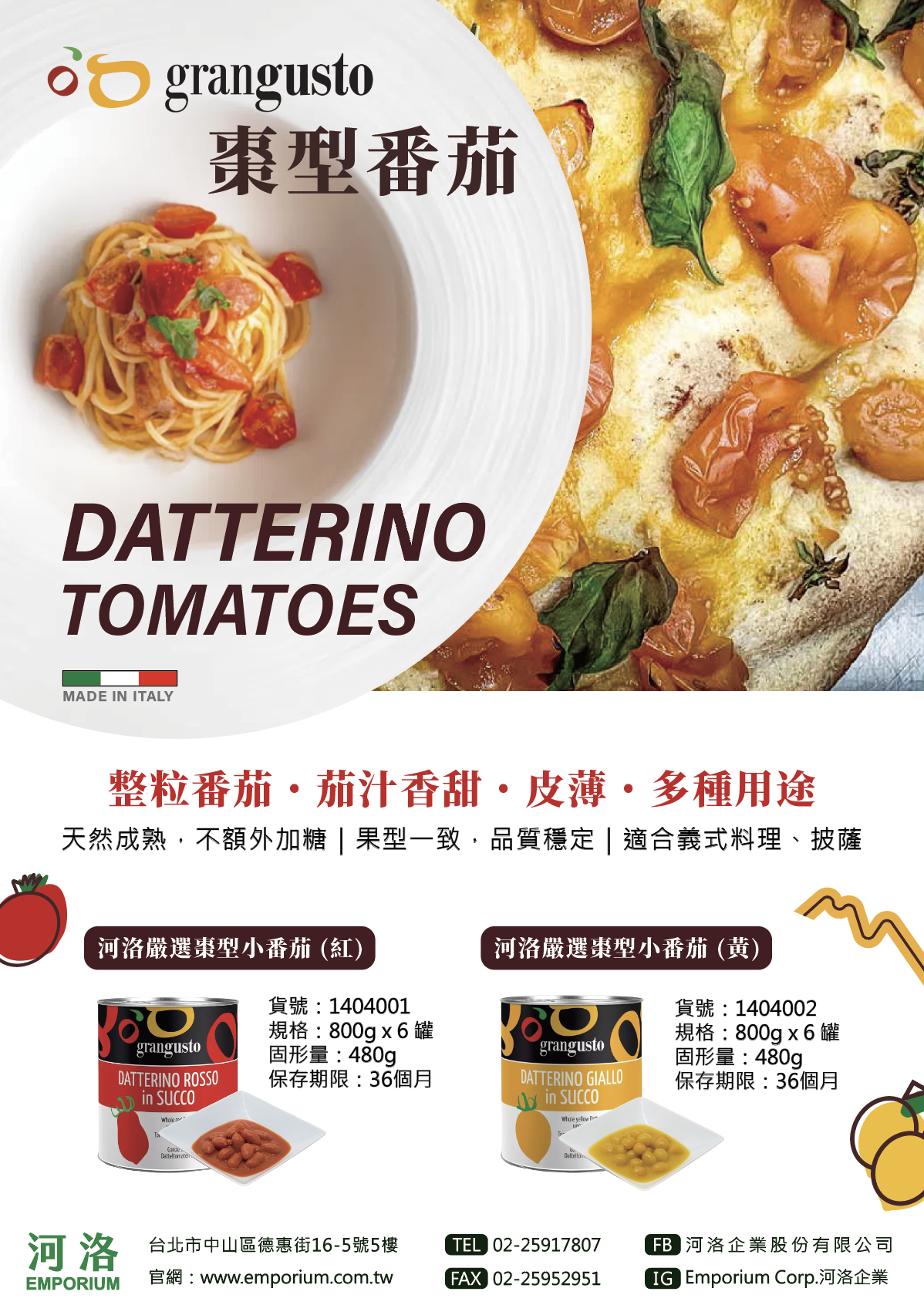 Grangusto 是 Finagricola 旗下專為 餐飲業與美食品鑑市場專業人士 打造的以義大利地中海料理原料為核心的專業餐飲品牌。農田位於義大利南部 Campania(坎帕尼亞)地區的 Piana del Sele(塞勒平原)—義大利最肥沃的農業區之一,被譽為義大利最大的菜園,擁有超過三百公頃的耕地。並且強調供應鏈的可追溯性與全程嚴格控管,確保品質與口味的一致性,番茄全部採以手工採摘。Grangusto 也明確指出番茄不額外加糖,無論是在農地還是加工過程中,它的天然甜味從未被刻意強化,所有甜味皆來自於果實自然成熟的糖分與品質,這一點對於強調健康、天然與風味自然 的市場訴求非常關鍵。